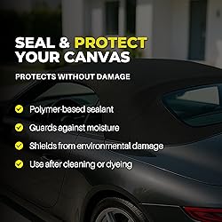 - WHAT DOES THIS PRODUCT DO - Specially formulated to seal and protect your canvas soft top this polymer based sealant will provide protection against moisture and other environmental damage. Used after Protex Canvas Cleaner or Canvas Dye this is the final stage in the Protex soft top restoration process. COVERAGE & PREPARATION - It is recommended that approximately 1Ltr. of product is sufficient to waterproof a top for a 4 seater car. It is best to apply the product in cool/overcast conditions so that drying time is not too fast and to avoid causing an uneven finish. APPLICATION STEP 1 - Shake the bottle well and decant sufficient product into a separate container to apply to the soft top. Starting in the middle and working towards the edges, apply the waterproofer with a clean paintbrush. Avoid spilling any onto the vehicle's paintwork. APPLICATION STEP 2 - Leave for 3 hours to allow the waterproofer to dry and if required recoat again allowing 3 hours drying time. FOLLOW UP - It is recommended that the canvas is sealed and protected using Protex Canvas Waterproofer every six months.