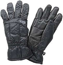 Goose down fill provides warmth and comfort Synthetic leather palm Fits small