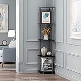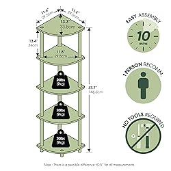 SPACE-SAVING CORNER DESIGN: This corner shelf features a compact vertical profile that fits snugly into corners, making it ideal for apartments, dorm rooms, and small living areas 5 TIER MULTIPURPOSE SHELVES: This corner bookshelf is perfect for displaying photo frames, storing books, organizing toiletries, or showcasing collectibles in any room setting WEIGHT CAPACITY: Each shelf of this 5-tier display shelf holds up to 10 lbs; total unit supports up to 50 lbs STURDY BUILT: Crafted from high-quality, durable composite wood with rounded corner to prevent injuries and plastic tubes. Built with FSC-certified wood, it unites sustainable materials and refined craftsmanship to deliver long-term durability and reliable use PRODUCT DIMENSIONS: 11.6(D) x 11.6(W) x 57.7(H) inches