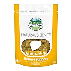 - Support your small pet’s health with Oxbow Natural Science Urinary Support, a veterinarian-formulated supplement designed to promote strong urinary tract and bladder function in rabbits, guinea pigs, chinchillas, and other small herbivores. This high fiber, hay-based urinary health supplement combines the power of Timothy hay with targeted herbal ingredients to provide essential urinary support for rabbits and urinary support for guinea pigs, helping pets maintain wellness at every life stage. Each chewable tablet is crafted with a blend of cranberry, astragalus root, pumpkin seed, and dandelion leaf, herbs long valued for their ability to promote urinary tract health, kidney support, and bladder function. Cranberry supports a healthy urinary environment, astragalus root aids kidney health, pumpkin seed helps strengthen bladder muscles, and dandelion leaf provides natural urinary tract support. Together, these ingredients make this supplement an excellent choice for pets prone to bladder sludge or UTIs. Formulated by veterinarians and nutritionists, this small animal urinary health supplement is made in the USA and contains no artificial colors, flavors, or preservatives. The timothy hay urinary health base delivers the fiber small pets need daily while ensuring the supplement is safe, effective, and highly palatable. Oxbow’s convenient urinary chews are recommended as a daily natural urinary health chew for rabbits, guinea pigs, and other small pets. Clear dosing guidelines by weight make it simple to provide the right amount of support. This supplement provides a natural way to promote bladder support, kidney health, and urinary tract wellness. Choose Oxbow Natural Science Urinary Support to give your pet the highest-quality, vet-formulated care. Whether you’re addressing rabbit urinary tract health, helping to prevent guinea pig bladder issues, or supporting overall renal wellness, this herbal urinary supplement is the perfect addition to your pet’s healthy diet.