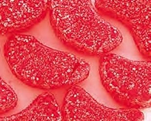 - red cherry slice candy made as an edible confectionery product with a sweet and fruity cherry flavor;soft and chewy texture offers a satisfying bite for everyday snacking and dessert enjoyment;crafted for food consumption and suitable for grocery and pantry use;ideal for candy bowls baking toppings and dessert decorations;bulk candy option designed for sharing and general confectionery needs;classic fruit flavored candy with consistent quality and taste;great addition to recipes party tables and snack selections;made for those who enjoy traditional fruit candy flavors;convenient for home kitchens events and sweet treats;intended strictly as a food product for enjoyment