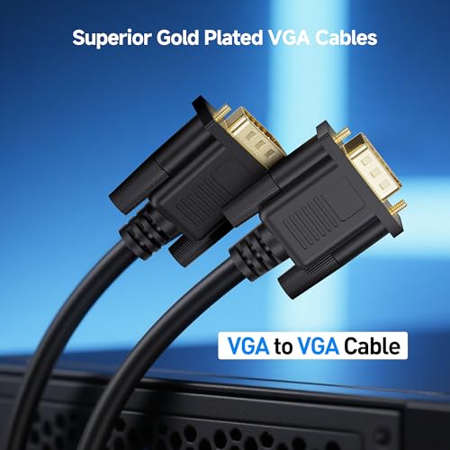 - Superior Performance for Clear Video Output: Featuring gold-plated connectors and bare copper conductors, this VGA computer monitor cable (VGA cable male to male, RGB cable) ensures superior RGB signal performance, delivering vibrant and sharp video quality.