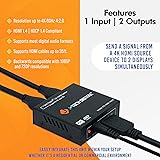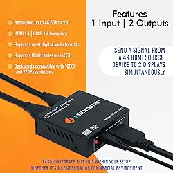 Distribute 1 HDMI Source to 2 Displays – Connect 1 HDMI source device to the input of the splitter, and distribute that signal to 2 displays simultaneously Enjoy 4K 4:2:0 Resolution Across Both Outputs – Works with resolutions up to 4K@60Hz and 4:2:0 chroma color subsampling Wide Variety of Audio Formats Supported – Enjoy HD audio formats including Dolby Digital, Dolby TrueHD, DTS, DTS-HD Master Audio Backwards Compatible with Previous Resolutions – Working with 1080P and not 4K? Not an issue. This splitter is backwards compatible with non-4k source devices and displays, including 1080P/1080i, 720P/720i/ 480P/480i Free Lifetime Support – All J-Tech Digital Products include a One-Year Manufacturer Warranty and free lifetime technical support from our team located in Stafford, TX – Available M-F 9AM – 6PM CST. Contact information available on the J-Tech Digital Seller Page.