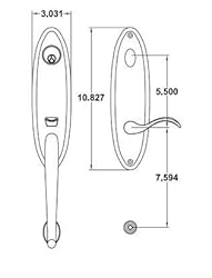 - Rockwell Premium 200 Series Single Cylinder Handle Set for 5-1/2" Durable door hardware, door handles, exterior door handle This innovate, durable, product is, high quality and an exceptional value for your security and peace of mind. At Rockwell we build a wide spectrum of the finest exterior door locks, swing and sliding door hardware, door hardware, pocket door hardware, and hinges for both residential and commercial applications. We stand behind our products with our Rockwell Guard lifetime finish you will be guaranteed an extended life of magnificence and brilliance. We are based out of Northern California and have a state of the art ISO 9000 certified manufacturing facilities world wide. includes; ANSI Certification: Grade 2 Door Thickness: 1-3/4 inch Handle Style: Grip Latch Faceplate: Square Corner Mount: Single Piece construction fits 5-1/2 inch CTC double bore. Keyway: SC1 with 2 Solid Brass keys Strike: Square Corner Strike size: L x W: 1.25inch x 2.25inch Deadbolt Throw: 1inch Keys: 2 Wide Bow Brass Keys Material: Forged Brass Projection: 3.2inches Lever Style: Wave Lever Lock Type: Residential Keyed Entry