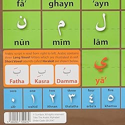 - This is an original Sumbox educational poster for children and adults alike. Designed for pre-madrassah children, but can be used by anyone interested in the Arabic language. Can be used in nurseries, madrassahs, schools or at home for a fun and colourful way to teach and learn the Arabic Alphabet. This is an ideal way of encouraging your child to learn the Arabic Alphabet and to have an excellent start to their madressah or home schooling education. Knowing the alphabet is an essential part of learning the Arabic language, placing this poster in a visible location will enourage regular propmts for learing the letters, numbers and pronounciation rules (Harakat). Regular revision from this poster will aid memorisation and understanding of Arabic alphabets. Clear text laid onto appropriate colours aid easy reading and recollection of the poster. The Sumbox Arabic Alphabet poster has a laminated finish which ensures durability and also gives an easy wipe clean surface. The size of the pos