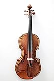 Exquisitely hand-carved floral pattern on both sides of the scroll with unique floral designs carved into backplate Ornamental leafing pattern hand-carved inside purfling on both top and bottom plates 100% handmade, 100% hand-varnished (gold with amber accents), 100% hand-adjusted The top plate is made of select Englemann Spruce with Maple back and sides, all naturally air-dried (over 30 years) Features Rosewood fittings including hand-carved pegs, tailpiece, and chinrest
