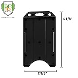 Open Face Design for Easy Access - Slide your ID Badge In and Out Easily - No Need to Fumble with Plastic Sleeves - Offers Secure Grip - No Need to Remove from Holder for a Quick Swipe or Scan Durable Hard Plastic Construction - Heavy Duty Plastic Resists Bending, Cracking, and Daily Wear and Tear for CAC - One Sided Badge Protector for Office Employees, Security Personnel, and Government Workers Vertical Hold - Designed to Hold One Standard Credit Card Sized ID Badge - Insert Size: 3 1/2" X 2 1/4", Outer Dimensions: 4" X 2 3/8" - Snug Vertical Hold to Prevent Your ID Card from Falling Out Black Rigid Badge Holder with Top Slot Holes - Attach to Lanyard Clip, or Vinyl ID Strap Badge Reel - Slot and Chain Holes Compatible with Retractable Badge Reels, Lanyards, Keychains, and More Professional for Any Industry - Sleek Black Color for Polished Appearance to Your Uniform or Business Attire - Suitable for Office, Law Enforcement, Military, Tactical Operations, Trade Shows, or Everyday Use