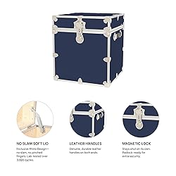 TOUGH AS A RHINO: A top-of-the-line trunk for college dorm life. Handles 1500+ lbs. USA Made with 3/8" Birch plywood, embossed vinyl & professional grade steel hardware. Comes assembled. SAFE, SECURE & LOCKABLE: Rhino trunks are lead & phthalate-free with a keyless magnetic latch and padlock loop (padlock not included). Secures food & valuables in a dorm room. No-slam soft-close lid protects fingers. AMERICAN CRAFTSMANSHIP: Using the highest grade steel trunk hardware, CNC technology & traditional methods to produce America’s finest trunks, chests and footlockers for camp, college & home storage. COMPACT VERSATILITY: Functions as a footlocker, seating, small coffee table, or bedside table in a college dorm room. Ideal for compact storage when space is limited. Genuine leather handles & aircraft-style rivets enhance durability. From furniture to storage, Rhino delivers space-smart storage. PERFECT FOR HOME STORAGE: Ideal as a hope chest, memory chest, keepsake trunk, office storage, or small amounts of seasonal storage like bedding or clothing. Tight-fitting steel tongue & groove closure keeps out moisture, dust, odors, & tiny unwanted guests. 18"x18"x20" trunk, 24 lbs.