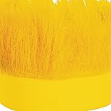 - Beistle Yellow Hairy Headband – 1 Count Show your team colors in loud and fuzzy style with the Beistle Yellow Hairy Headband! This eye-catching headpiece features a vivid yellow fabric band topped with wild, upright faux hair in the same bold hue. Whether you're hyping up your school at a pep rally, energizing the crowd at a game, walking in a parade, or dressing up for a theme party, this headband is the perfect way to stand out and celebrate in colorful, over-the-top fashion. Made from lightweight materials, this novelty headband is comfortable enough to wear all day at tailgates, spirit weeks, or classroom celebrations. With a 22-inch head circumference and plush band it offeres a one-size-fits-most design to fit most adult head sizes. It's easy to wear solo or paired with face paint, jerseys, or matching fan gear. The bright yellow tone is ideal for high school, college, or professional team colors, and adds animated flair to costumes, parades, corporate color days, and themed fundraisers.