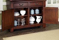 - Rustic charm meets old world craftsmanship with this Homestyles Aspen Buffet. This piece is highlighted by the richness of solid mahogany carved into solid pilasters and picture frame moldings, which is all finished in a warm rustic cherry finish. Inside the two front doors and drawers lies plenty of storage space, especially in the adjustable shelf space inside each cabinet. The difference always lies in the details, and this buffet is loaded with the little things that make this a true classic.