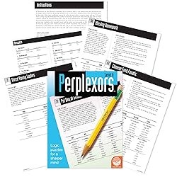 - Unleash the power of deductive reasoning and logical elimination with MindWare’s 'Perplexors: Level A'. This logic workbook is an ideal choice for grade school students, specifically designed for ages 9-10. It presents 48 entertaining story problems that require math skills, testing the abilities of kids to use clues and cross off words in a list of all possible answers to solve a puzzle. As the puzzles increase in complexity, they provide a progressive challenge to the young minds, building thinking classrooms in mathematics, grades k-12. The Perplexors: Level A is not just a kids puzzle book but a comprehensive tool for developing logic and math skills. Its engaging content makes it a perfect math puzzles for kids ages 9-12 and a useful educational resource. The logic puzzles for kids in this book provide an excellent exercise for entire classrooms or single students, enabling them to sharpen their skills while away from school. The book comes with 48 full-page puzzles with solutions. This feature makes it a great math games book, suitable for both classroom teaching and self-study. The math logic puzzles for kids in this book are a great way to prepare for standardized tests, as they build logic skills essential for problem-solving tasks. Perplexors: Level A from MindWare is a comprehensive logic workbook that combines logic puzzles, math puzzles, and games in an engaging and challenging format. It is an essential tool for helping students develop and enhance their problem-solving abilities in an entertaining way.