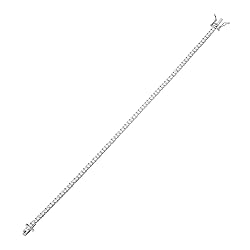 STYLE: Classic tennis bracelet features 2mm round cut cubic zirconia and is 7.75" long MATERIAL: Crafted in sterling silver that is hypoallergenic and nickel and lead free; set with sparkling round cubic zirconia stones in four-prong basket settings DETAILS: 850 platinum plating added to enhance design and appearance; includes secure clasp with tongue in groove closure and figure 8 safety catch CARE: Store in a cool, dry place and limit exposure to extreme temperatures and household cleaning products; clean with a soft cloth and warm soapy water