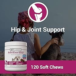 HIGH-QUALITY DOG SUPPLEMENT ADVANCED JOINT SUPPORT: Clinically tested joint support for senior pets, those recovering from joint related injuries or surgery, or when the most support is needed. ArthriEase-GOLD Joint support health supplement for dogs and cats. This dog supplement with antioxidants is designed to help alleviate aches and discomfort associated from daily exercise. ANTIOXIDANT-RICH PET JOINT SUPPORT: Formulated for dogs and cats, ArthriEase-GOLD Joint Support is rich in antioxidants with a veterinarian-approved formula to support joint movement, cartilage health and lubrication of joints. ALLEVIATE JOINT DISCOMFORT AFTER NORMAL DAILY EXERCISE FOR DOGS, CATS: ArthriEase-GOLD Joint Support for Cats and Dogs provides advanced joint support for senior animals, or those recovering from joint related injuries or surgery, or when the most support is needed. VETERINARIAN FORMULATED PET CARTILAGE HEALTH SUPPLEMENT: Each soft chew of this joint support supplement for dogs and cats includes wholesome ingredients such as glucosamine, chondroitin, green-lipped mussel, and hyaluronic acid to help increase activity. PREMIUM PET SUPPLEMENTS: Since 1994, Vet Classics has offered a high-quality line of pet health supplements developed by veterinarians and staff scientists for dogs, cats and horses. Vet Classics offers preventative and solution based supplements for hip and joint support, cardiovascular care, liver support, urinary support, digestive support, and more.