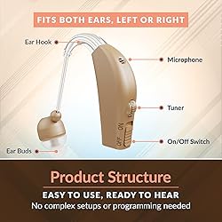 UNIQUE RECHARGEABLE HEARING AMPLIFIER: The ultimate BTE hearing amplifier for those who seek high quality sound amplification. It comes with a noise reduction feature that offers optimum hearing. CUTTING-EDGE DESIGN: This revolutionary device is designed by our most experienced audiologist. It has full digital circuitry and volume control for better access. Our amplifier is small and flexible. Also, its charger is sleek and travel-friendly. LOW POWER CONSUMPTION: This BTE amplifier is rechargeable, which eliminates the requirement of buying replacement batteries. It consumes extremely less power, and once fully charged can run for two working days. PREMIUM QUALITY: Both the external and internal components of our device are made from top grade materials that ensure better quality and lasting. COMFORTABLE AND CONVENIENT: Our new rechargeable hearing device can be worn comfortably in either ear. For perfect fitting in all types of ears of all ages, it comes with 6 distinctive ear plugs.