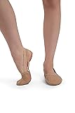 Women begin with street shoe size. Men begin 2 sizes up. Wide widths and 1/2 sizes are encouraged to size up. XS (4-5), S (6-7), M (8-9), L (10-11), XL (12-13), XXL (14-15). Leather upper, Leather lined Half sole design with covered toes, Suede sole patch with pleats Soft elastic binding keeps shoe in place without pinching, Extremely flat pleats 5/8" one-sided plush primary elastic pre-attached at the sides 3/8" secondary elastic attached under the arch, Capezio logo on sole