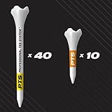 #1 Tee on the Tour – Use the brand the pros trust and up your game with Professional Tee System (PTS) Pride Plastic Tees. 100% Plastic for Better Durability - Our proprietary plastic tees last longer than the leading wooden tees. Low-Resistance Tips - Less friction on the ball on impact means reduced side spin and further drives, keeping you on your way to a more manageable second shot. Combo Pack - 40 2 3/4” tees and 10 1 1/2” tees ensure you have a tee for every shot on the course no matter what club you're using. Striped for Tee Height Consistency - Never question or worry about your ball height again with a stripe on every tee to easily remove another variable from your tee shots. Low-Resistance Tip for Less Friction Plastic Material to Last Longer Enviro-Friendly Includes (40) 2-3/4-Inch tees and (10) 1-1/2-Inch tees Choose your color, choose your size