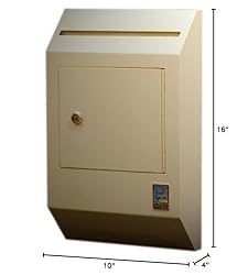 Safe & Heavy Duty: Sturdy Piano hinge,metal baffle to protect slot. Reinforced double steel door to protect against prying. User-friendly lock: Tubular-style key lock with Double "D" configuration, two tubular keys included. Diverse use: Use as a mail collection box for all out-going office mail. The perfect way to lock and secure suggestions, ballots, mail, money, rent checks and more. Size: Slot opening 8-7/8" wide will accept legal size paper. Exterior Dimensions: 10” (W) x 16-3/8” (H) x 4” (D),Door Clearance: 7-1/8” (W) x 6-1/4” (H), Door Thickness: 1/8”, Weight: 16 Lbs. Simple and quick installation: Pre-drilled mounting holes in back. Mounting hardware for wood and concrete is included.