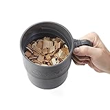 6-inch height / 48 ounce capacity Made of plastic Quick, easy and eliminates mess Screw-down lid keeps wood chips submerged Compact size for easy storage