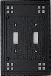 - This beautiful wall plate is a replica of the old Arts and Crafts Mission style wall plate that was made popular around the turn of the century. We have redesigned it slightly to incorporate a beveled back instead of a flat back. The wall plate is finished in the popular oil rubbed bronze finish, dark mahogany coloring with some copper undertones showing through. Made of solid forged brass that has been copper plated. This plate measures 4 1/2" wide by 6 3/4" high and weighs in at 12 ounces. This is a two gang wall plate that will accommodate two standard toggle light switches.