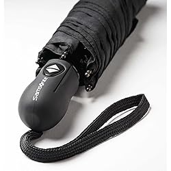 Abrir/cerrar automático. Cúpula protectora contra el viento de poliéster con recubrimiento de teflón. Mango redondo de TPR con marca Samsonite. Longitud plegada de 10"