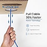 NATIONAL ELECTRICAL CODE (NEC) COMPLIANT: Built with 100% annealed solid bare copper conductors, meeting NEC Section 800.179, which mandates that "Conductors in communications cables, other than coaxial, shall be copper." Rated for 75°C and 300V, ICC cables ensure stable network communications while reducing fire hazards. PoE++ RATED NETWORK CABLE FOR POWERING DEVICES: This Cat6 CMR riser-rated UTP bulk Ethernet cable with 4 twisted pairs (8 conductors) supports up to 100W Power over Ethernet (PoE++), making it ideal for powering devices such as security cameras, webcams, and other networked equipment. The cable supports frequencies up to 500MHz and is ETL and UL listed, ensuring reliable performance and safety. REELEX TANGLE-FREE TECHNOLOGY: The 1000-foot (305-meter), riser-rated, solid bare copper bulk Ethernet cable, packaged in a REELEX II tangle-free pull box, eliminates unwiring hassles and saves valuable time. Sequential footage markings along the jacket facilitate precise length determination and easy usage tracking. TAA COMPLIANT & SECTION 889 CERTIFIED: ICC cables meet U.S. government regulations, including TAA and Section 889. Manufactured in approved countries, with UL Certification and RoHS Compliance. ETL Verified for performance, they conform to TIA 568.2-D (U.S.) and IEEE 802.3 (International) standards, ensuring compatibility with Fast Ethernet (100BASE-TX) and Gigabit Ethernet (1000BASE-T) applications. INDOOR USE: Made with a CMR riser-rated PVC jacket, this cable is specifically designed for indoor vertical installations, such as cable runs between floors through risers. Not intended for outdoor use.