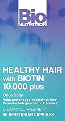 - Bio Nutrition Healthy Hair Biotin is essential for the metabolism of fats and proteins and is necessary for health hair and nail growth.