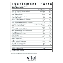 Multivitamin: With magnesium, zinc, calcium, vitamin D3, vitamin C, vitamin A, biotin, niacin & more Antioxidants Supplement: Gentle formula includes potent antioxidants & mineral amino acid chelates Clean Formula. Hypoallergenic and Non-GMO. Made without artificial fillers, coatings, binders, or colors. Quality You Can Rely on: Our rigorous quality assurance program includes third-party independent laboratory testing of raw ingredients and finished products for purity and potency to ensure what’s on the label is in the bottle. Vital Nutrients: Committed to making high-quality supplements that support health & vitality