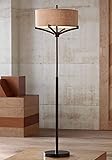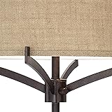 Franklin Iron Works Tremont Modern Mid Century Floor Lamp Standing 62" Tall Deep Bronze Metal Tan Burlap Drum Shade for Living Room Reading Bedroom Office House Home Decor