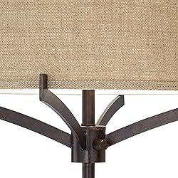 【Specifications】UL listed. 62" high overall. Base is 11" wide x 1 1/2" high. Drum shade is 18" wide across the top and bottom x 7" high. Weighs 17.2 lbs. Uses two maximum 100 watt standard-medium base bulbs (not included). 【Elegant Farmhouse Style】This farmhouse floor lamp enhances your bedroom decor with its rustic yet modern design. The bronze finish, combined with a skinny profile, makes it ideal for tight spaces. Whether used as a bedroom standing lamp or a tall lamp for a living room corner, this elegant floor lamp adds a decorative touch to any space while providing practical bedroom lighting. 【Industrial Charm】This brown, industrial pole lamp brings modern functionality to any family room or dining room. Ideal for apartment lighting, as a standing floor lamp, or as a library floor lamp, this tall standing lamp provides ample light with a stylish design. 4-position switch on the pole below the shade. Setting for: right bulb on, left on, both on, both off. 【Pre-Assembled Shades】Mid-Century modern design with rustic farmhouse style from the Franklin Iron Works brand. Deep bronze finish. Metal construction base. Tan burlap drum shade. 7-foot long cord. 【Modern Versatility】Illuminate your home with this unique and contemporary tall floor lamp, perfect as a modern floor lamp for a living room or as an accent in your entryway. The reading light feature makes it ideal as a bedside companion or a functional office light. This sleek, slim floor lamp fits seamlessly into small spaces like apartments, adding stylish indoor lighting.