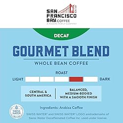 Our Decaf Gourmet Blend is comprised of 100% arabica beans from Central and South America, this medium roast results in a lively, well-rounded and smooth coffee. SWP DECAF: We decaffeinate all of our decaf coffees using the Swiss Water Process. No Chemicals ever. QUALITY COFFEE: San Francisco Bay Coffee uses only 100% arabica coffee and certified Kosher coffee beans. Hand picked and grown in high altitude. We're so confident you'll love it, we back it with a satisfaction guarantee. SUSTAINABLY AND ECO- FARMED COFFEE: We offer a wide selection of sustainably grown, sourced, and packaged coffee from whole bean to ground, flavored to decaf, and much more. SF BAY COFFEE is a family owned, American made company with a rich tradition. Our reputation reflects on us as a family so if you're ever not happy with your purchase, call us and we'll make it right.