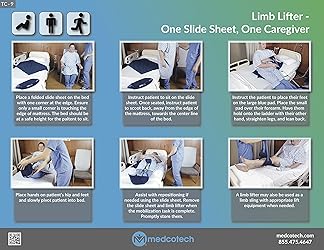 Promotes use with patients who are weak or have limited range of motion Simple use assisting with wound care, dressing changes and incontinence care or cleaning Includes free Pediatric / Half Slide Sheet to assist with pivoting legs into the bed Slide Sheet may also be used for on bed boosting and positioning, and sit to sit transfers Training and Education materials included with each shipment