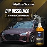 - DipYourCar.com: Plasti Dip Dissolver - Dip Coat Cleaner (32 oz Spray Bottle) Our Plasti Dip Dissolver liquifies plastic dip in areas where it's too thin to peel away. Dip Your Car's Plasti Dip Dissolver works faster and easier than any other remover. We use 90% active ingredients to create the most effective dissolver that won't damage the paint under your plasti dip coat. Dip Your Car does more than create Plasti Dip kits, colors, and custom sprays. We make top of the line tools and accessories for maintaining, cleaning, and improving your car! Upgrade Your Dip Don't waste your time slowly picking away small thin pieces of aerosol HyperDip and peelable removable Plasti Dip. Remove it the easy way with DYC Plasti Dip Dissolver. Just spray a full coat over the dipped area and let sit for 60-90 seconds then apply one more coat and wait another 60 seconds and the dip will be liquified. Now the dip will be easy to clear away with a power washer. If you're removing Plasti Dip from multiple sections we suggest working one panel at a time until you're finished. Don't let Dip Dissolver come into contact with plastic areas like window trims, mirror caps, consoles, headlights, and tail lights. DIY by DYC DipYourCar started with one simple goal, to improve classic plastic dip finishes to work better for automotive uses. Millions of customers agree there's no coating that performs better, goes on easier, or looks cooler than DYC! We offer a full suite of accessories and tools made to maintain, improve, clean, and even remove your dip coatings. Our customers made us who we are today and we're here to make sure you get the most out of our products and your car. You always get the best when you Dip Your Car!
