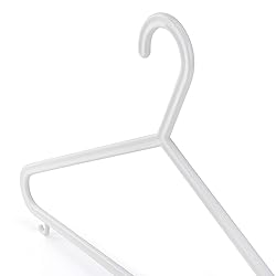 PACK OF 10 - high quality plastic clothes hangers ideal children's to teen hanger and for smaller size adults SMOOTH NO-BUMP DESIGN - Standard hangers but with smooth top so no bumps on shirts, t shirts and sweaters, with hanging loops underneath for tank tops, camisoles, skirts and strapless dresses SLIM SPACE SAVING - Thin plastic hangers are great for maximizing your closet space, the clothes hangers also have a bar for hanging pants, so you can hang a full outfit together GREAT VALUE - Quality tubular plastic means these hangers are strong, but not brittle so they are long lasting. Sized for children to young / small adult, so will see you through from middle school to your college dorm Size - Pack of 10 white plastic clothes hanger dimensions are 14inch length x 0.2inch width x 8.3inch height (36cm x 0.5cm x 21cm) HOOK - Opening of the hook is approx 1.2inches - Please measure your closet rod before purchasing.
