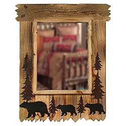 BLACK FOREST DECOR Rustic Wood Mirror with Bear Silhouettes - Lodge Style Wall Decor