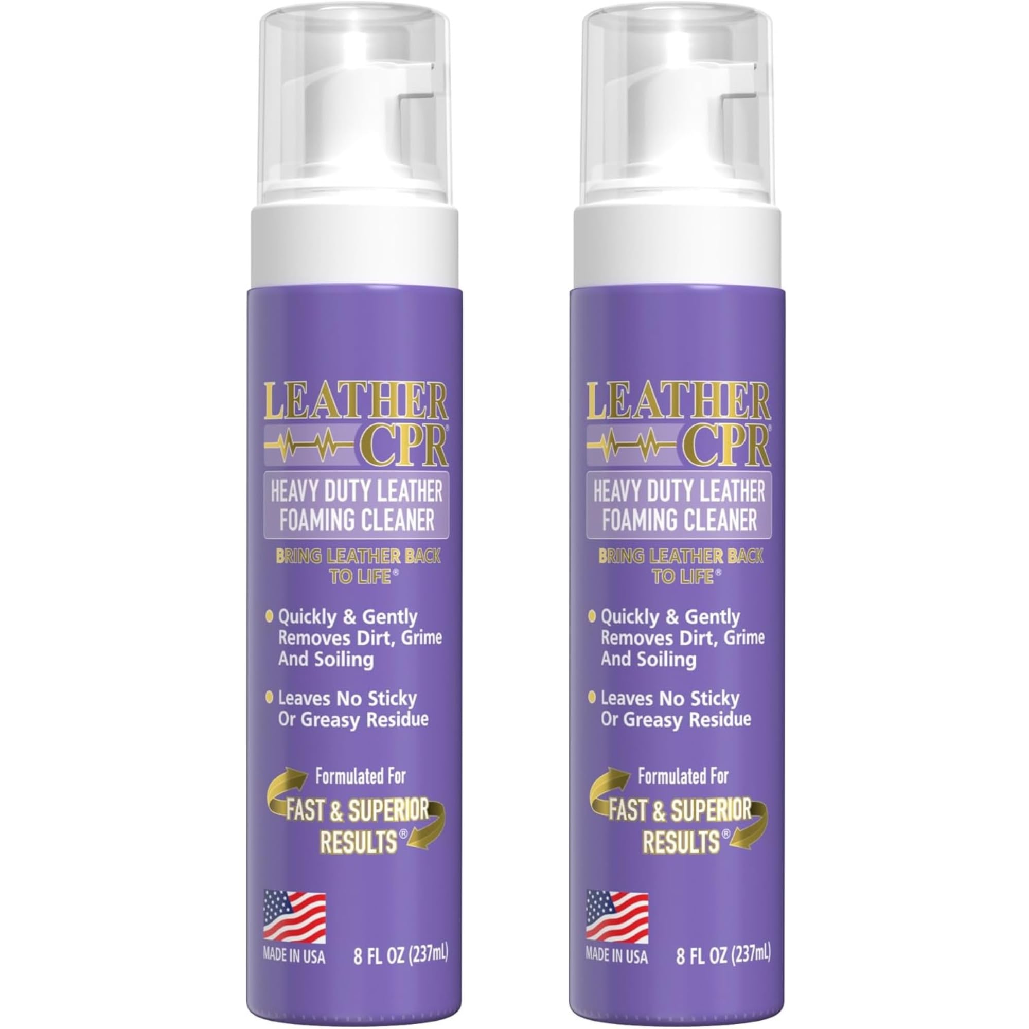 PREMIUM LEATHER CARE SOLUTION: Leather CPR leather cleaner and conditioner is ideal for maintaining leather’s texture and appearance, from leather couches and furniture to purses and shoes. Whether you need a leather couch cleaner and conditioner, a leather conditioner for purses, or leather cleaner for couches, our product delivers long-lasting results. GENTLE AND SAFE FORMULA: Our formula is safe for use on various leather goods, including couches, purses, and shoes. Designed to be a leather cleaner and conditioner, it offers mild treatment for your items without damage. Suitable for use as a leather conditioner for couch, leather furniture cleaner and conditioner, or a gentle leather sofa cleaner, it works on delicate leather surfaces with ease. QUICK AND EASY APPLICATION: Simplify your leather care routine with this 2-in-1 leather cleaner and conditioner for furniture. Great for quick maintenance, it works as a leather couch conditioner and leather sofa cleaner and conditioner in just one step. Skip lengthy processes with this efficient solution, suitable for sofas, shoes, and bags. VERSATILE LEATHER MAINTENANCE: This all-in-one leather care kit is great for furniture, bags, shoes, and even car interiors. It cleans, conditions, and protects leather from dirt, stains, and scratches. Whether you need a saddle soap, or a white leather sofa cleaner and stain remover, this Leather CPR Cleaner and Conditioner helps preserve the life and beauty of your leather goods. RENEW AND PROTECT LEATHER: Maintain the texture and appearance of your leather with this leather moisturizer. Acting as a leather cleaner and conditioner, it nourishes and protects leather items. Use it regularly as a cleaner for white leather couch, a leather couch conditioner for furniture, or as part of your leather care kit to extend the life of your favorite leather pieces.