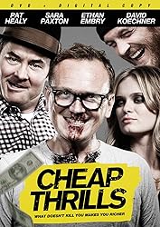 - Cheap Thrills follows Craig (Pat Healy, Compliance), a struggling family man who loses his low-wage job and is threatened with eviction. In an effort to delay facing the music at home, he heads to a local bar and encounters an old friend (Ethan Embry, Empire Records). The two friends are roped into a round of drinks by a charismatic and obscenely wealthy stranger (David Koechner, Anchorman 2) along his mysterious wife (Sara Paxton, The Inkeepers). The couple engages the two friends in a series of innocent dares in exchange for money over the course of the evening, with each challenge upping the ante in both reward and boundaries. It seems like easy and much needed money, but the couple's twisted sense of humor pushes just how far Craig and his friend are willing to go for money and cheap thrills.