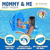 MOMMY & ME SHARED SWIM DESIGN: Dual-ring float lets a parent or caregiver stay connected in the water while baby floats safely; perfect for building early water comfort and trust COMFORTABLE DROP-SEAT SUPPORT: Extra-deep seat with roomy leg openings keeps baby secure while promoting natural kicking, movement, and early swim readiness DETACHABLE UV SUN SHADE: Removable canopy offers UPF protection to help shield infants and toddlers from direct sunlight; helps keep baby cool during longer pool sessions FOR AGES 8–24 MONTHS: Ideal for infants and toddlers who are new to the water; great for beginner pool play, early swim lessons, and vacation fun with close adult interaction DURABLE POOLMASTER QUALITY: Made from heavy-duty, non-toxic vinyl for long-lasting use; inflates and deflates easily for travel, storage, and on-the-go swim days