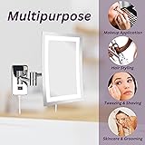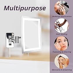 STUNNING WALL-MOUNT MIRROR - Upgrade your bathroom with this modern, chrome-finish makeup mirror! This plug in mirror has a 6.5’ power cord and plug. This magnifying makeup mirror is easy to install and attached to a 15.5-inch arm that extends from the wall. NEW & IMPROVED LIGHTING - These magnifying makeup mirrors now feature LED bulbs that are bright and long-lasting. Experience flawless makeup application with vibrant LED lighting! 5X MAGNIFICATION - This Jerdon makeup mirror offers 5X magnification, which makes tweezing and grooming easier. QUALITY DESIGN - This wall mount magnifying mirror is used in luxury hotel rooms and spas around the world. Jerdon mirrors feature bright LED bulbs, scratch-resistant finishes, durable hardware, and expert design. SPECIFICATIONS - This chrome-finish wall mount mirror includes a 15.5-inch extendable arm and mounting hardware, allowing you to save valuable counter space. This 9" by 6.5" mirror features 5X magnification, making it great for shaving, tweezing, makeup application, and more! This is a plug in mirror with a 6.5' power cord and plug.