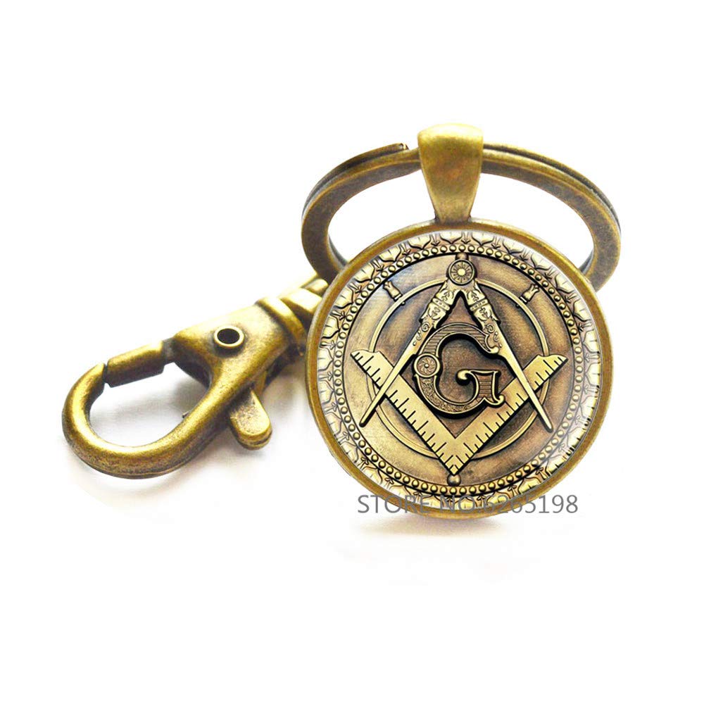 Square & Compass Black Leather Medallion Masonic Key Chain - [Blue & Gold][3 1/8'' Tall]