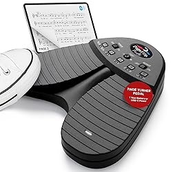 HANDS-FREE PAGE TURNING WITH LED PEDALS: This bluetooth page turner pedal lets you flip pages silently and hands-free. Illuminated pedals offer perfect visibility in dark venues. Ideal ipad foot pedal for musicians performing live or in low light. UNIVERSAL APP & DEVICE COMPATIBILITY: Works with iPad, Android, Mac, Windows & Linux. This ipad page turner foot pedal supports forScore, MobileSheets, OnSong & more via Bluetooth or USB-C – your perfect wireless page turner solution. FULLY PROGRAMMABLE FOR PERSONALIZED CONTROL: Customize both pedals with 5 preset modes or assign hotkeys via our software. Whether you need arrow keys, mouse clicks or page turns, this bluetooth page turner for ipad adapts to your setup. RUGGED, SILENT & EXPANDABLE DESIGN: Built tough with noiseless action and dual aux ports for external pedals or assistive switches. This wireless music controller is the go-to footswitch pedal for studio pros and stage performers. USB-C OR BATTERY POWERED FOR LONG LIFE: Run this usb foot pedal for up to a year on 2 AA batteries or power via USB-C. Auto sleep mode activates after 30 minutes of inactivity. Reliable ipad remote page turner for gigs, practice sessions, or everyday use.