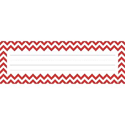 - Create a fun, vibrant and personalized classroom environment by incorporating red, green, teal and grey chevron names plates as beautiful educational decorations. The ideas are endless for personalized usage! Place these name names on students’ desks, cubbies, folders or as a welcome on the door for the beginning of the school year. Our chevron name tags are great quality and will provide a personal and homey touch to your classroom that will last all year long. One set will cover a whole classroom of students and then some. This package contains 36 name plates that measure 9.5 inches by 3.2 inches, with nine of each vibrant color.