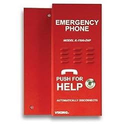 - - Viking simple emergency phone without auto dialing - Door or gate communication - Commercial, industrial and residential door security - Truck stop/gas station fuel island communication - Business delivery entrances - Use in conjunction with a Viking Hot-Line Dialer on C.O. lines or analog PABX/KSU stations - Use on any programmed ringdown circuit of an analog PABX/KSU station - One year manufacturer's warranty - Handsfree or handset available - Phone line powered - No dial pads - Designed to mount in a standard emergency phone enclosure - Built for easy installation and simple operation - Auto answer feature allows remote monitoring (can be disabled) - Adjustable time out to limit prank calls and false alarms (approximately 30 seconds - 7 minutes) - Auto-answer feature allows remote monitoring (can be disabled) VKK1500EHFA