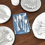 INCLUDES: This Oneida silverware set contains (8) dinner knives, (8) dinner forks, (8) salad forks, (8) dinner spoons, (16) teaspoons, (8) tall drink spoons, (2) serving spoon, (1) pierced serving spoon, (1) sugar spoon, (1) butter knife, and (1) serving fork. The Tress line was designed for casual restaurants and everyday home meals. CLASSIC DESIGN: Classic simplicity finally gets to fine dining. A style fit for ballrooms with a pattern simple enough for homes, this silverware set’s finish is so clean you’ll see yourself reflected. Tress was made for every table. TOP QUALITY: What distinguishes silverware to the touch? Finish and weight. This expertly crafted pattern is mirror finished, extra strong, but delicately light in the hand. The result? Perfection. PREMIUM STAINLESS STEEL: 18/0 stainless-steel silverware is extra durable and provides rust protection. These utensils will shine for dining and wash clean in the dishwasher worry free.