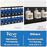 REINFORCED STEEL CONSTRUCTION: Made from 16-gauge cold-rolled steel (CRS) with a durable black powder coat finish, ensuring rigidity and stability for reliable long-term performance in rack installations. FLUSH MOUNT DESIGN: Keystone jacks sit flush with the front face of the panel, reducing cable snags and maintaining a clean, professional appearance in high-density installations. HIGH-DENSITY APPLICATIONS: Maximizes connectivity in limited space, making it ideal for setups requiring multiple data, voice, audio, and video connections. MODULAR DESIGN: Compatible with slim-profile keystone jacks, including CAT6A, CAT6, CAT5e, HDMI, RCA, USB, and F-Type, for flexible configurations in data, voice, audio, and video applications. Use with ICC’s Keystone Connector Removal Tool (SKU: ICACSP481) , sold separately, for quick and easy connector removal in high-density installations. EIA-310-E COMPLIANT, TAA COMPLIANT & UL LISTED: Designed to fit all standard 19-inch racks and cabinets with pre-drilled holes for universal mounting. Includes #12-24 x 5/8” pilot point screws for easy installation. Meets U.S. government regulations, including TAA and Section 889 certification, and is UL Listed (E125268) and RoHS certified for safety and reliability in professional installations.