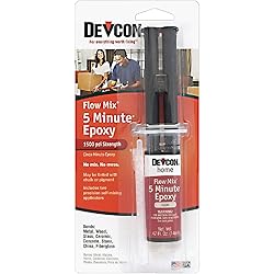 - Flow-mix applicator allows you to dispense mixed epoxy which can be applied directly to the surfaces to be glued. Flow-mix nozzle twists on securely to dispense mixed epoxy product. Makes clear, fast epoxy repairs. Bonds metal, wood, masonry, ceramic, china, and glass. 1/2 oz. syringe, includes 2 nozzles. P.S.I. strength: 1500 lb. to water.