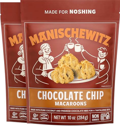 Manischewitz Macaroon Chocolate Chip Cookie, 10 oz (2 Pack) | Coconut Macaroons | Resealable Bag | Dairy Free | Gluten Free Coconut Cookie | Kosher for Passover