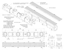 Trench drain & grate come in 48" (4 feet) sections that can be cut down to 12", 24" & 36" All outlet ports accept 3" SCHD 40 pipe, 4" SDR 35 pipe & 4" SCHD 40 pipe Outside holes accept #4 rebar for fast positioning 2x4's can be easily fastened to the base to provide a wider footing End Caps & End Outlets are sold separately