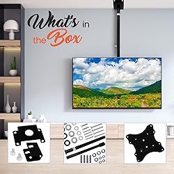 ADJUSTABLE HEIGHT: The monitor holder features a height adjustable arm from 24.6” to 34.4”. It is also tilt adjustable from -20 to +20 degrees and swivel can be adjusted up to 180 degrees providing viewing comfort even when you’re lying on the couch UNIVERSAL COMPATIBILITY 14” - 42”: Pyle brings you a universal TV mount that was designed for saving space and creating optimum viewing pleasure as it features a bracket design that mounts to ceilings. It fits any 14 to 42 inch television VESA MOUNT: Features a universal VESA Mounting Interface Standard (MIS), a set of standards for the manufacturing of flat screen televisions and PC monitors. A VESA hole pattern is measured in both horizontal and vertical distance b/w mounting holes MOUNTING HARDWARE: Includes all necessary mounting hardware and brackets for easy and hassle-free installation. The TV mount can be safely used for wooden joist ceiling and solid brick and concrete ceiling mounting SAFE AND RELIABLE: It promotes safe, durable, and reliable TV mounting and can hold up to 66 lbs load. Made to fit flat panel HDTV, LCD, LED, Plasma, Smart TVs - from brands including Samsung, JVC, Magnavox, Panasonic, Sharp, Toshiba, Vizio and more