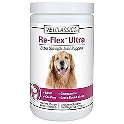Vet Classics Re-Flex Ultra Extra-Strength Joint Support Dog Supplement – Includes MSM, Creatine, Glucosamine, Green Lipped Mussel – Supports Healthy Dog Joints – Chewable Tablets 120 Ct.