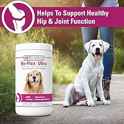 EXTRA-STRENGTH DOG SUPPLEMENT FOR JOINT, HIP FUNCTION: Offer your senior dogs the extra support they need with this Re-Flex Ultra Extra-Strength Joint Support dog supplement. This joint dog supplement helps support flexible hips and healthy joints for dogs, especially senior animals. GLUCOSAMINE DOG SUPPLEMENT FOR JOINT SUPPORT: Formulated especially for senior dogs, Re-Flex Ultra Extra-Strength Joint Support Dog supplements help support joint cartilage and connective tissue so your playful pup or senior dog can continue to enjoy an active lifestyle. JOINT SUPPORT DOG SUPPLEMENT: Dogs often experience discomfort after normal daily activity, especially senior animals. Help to support healthy hip and joint function with this dog supplement. VETERINARIAN FORMULATED PET JOINT SUPPORT HEALTH SUPPLEMENT: Each chewable tablet of this joint support supplement for dogs includes glucosamine, green lipped mussel, MSM and vitamins C and E to help support healthy hip and joint function. PREMIUM PET SUPPLEMENTS: Since 1994, Vet Classics has offered a high-quality line of pet health supplements developed by veterinarians and staff scientists for dogs, cats and horses. Vet Classics offers preventative and solution based supplements for hip and joint support, cardiovascular care, liver support, urinary support, digestive support, and more.
